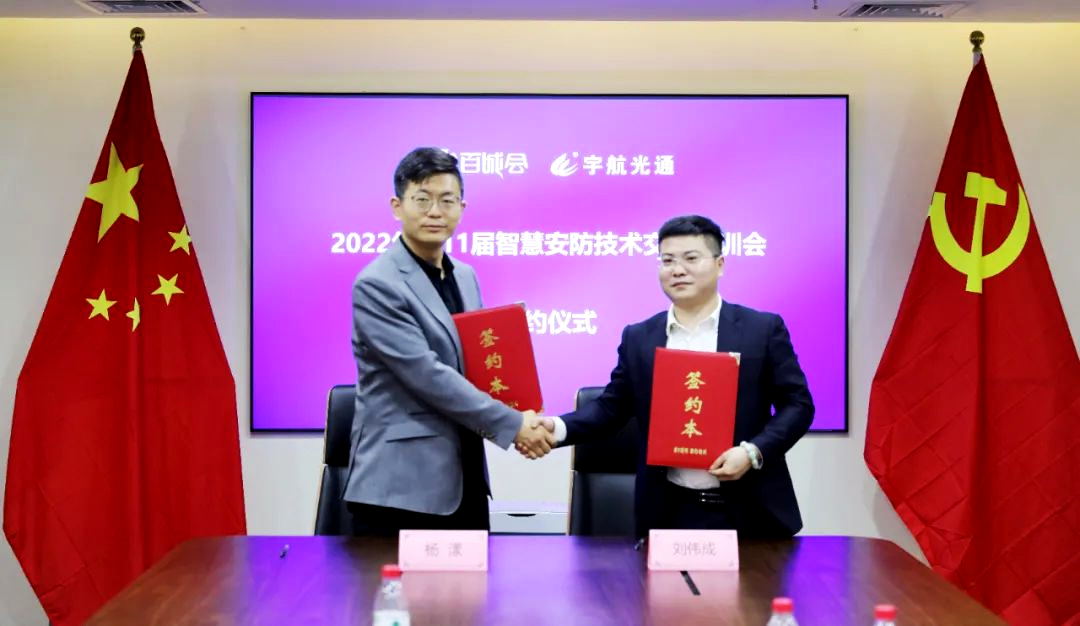 隨后,宇航劉總與CPS中安傳媒副總裁楊漾代表雙方上臺共同完成了2022年第十一屆智慧安防技術交流培訓會活動簽約。