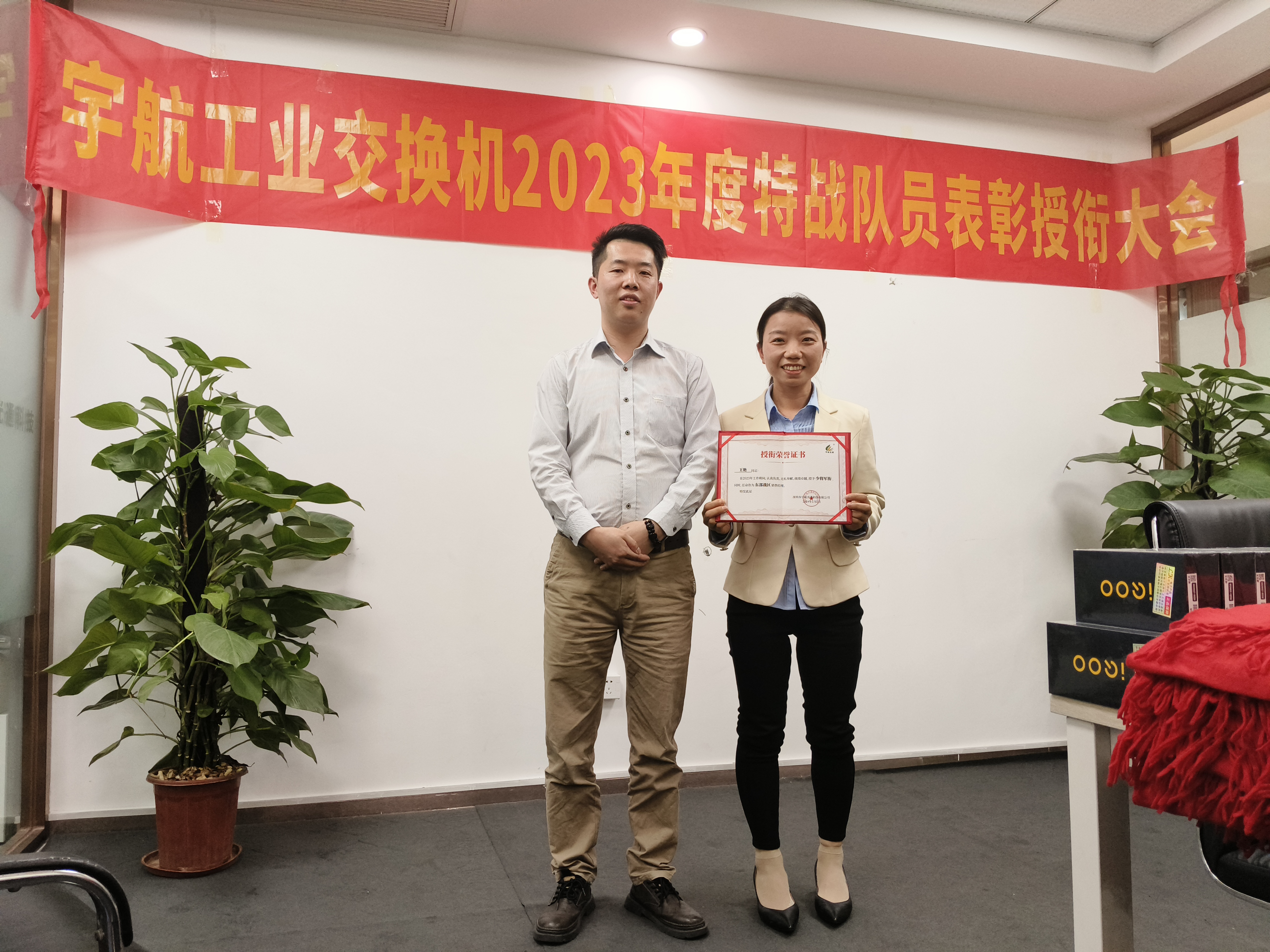 為了表彰各位宇航特戰隊員在市場開拓、客戶維護和團隊協作等方面做出的卓越貢獻,宇航工業交換機營銷副總張玉平代表公司為大家頒發榮譽和獎勵。