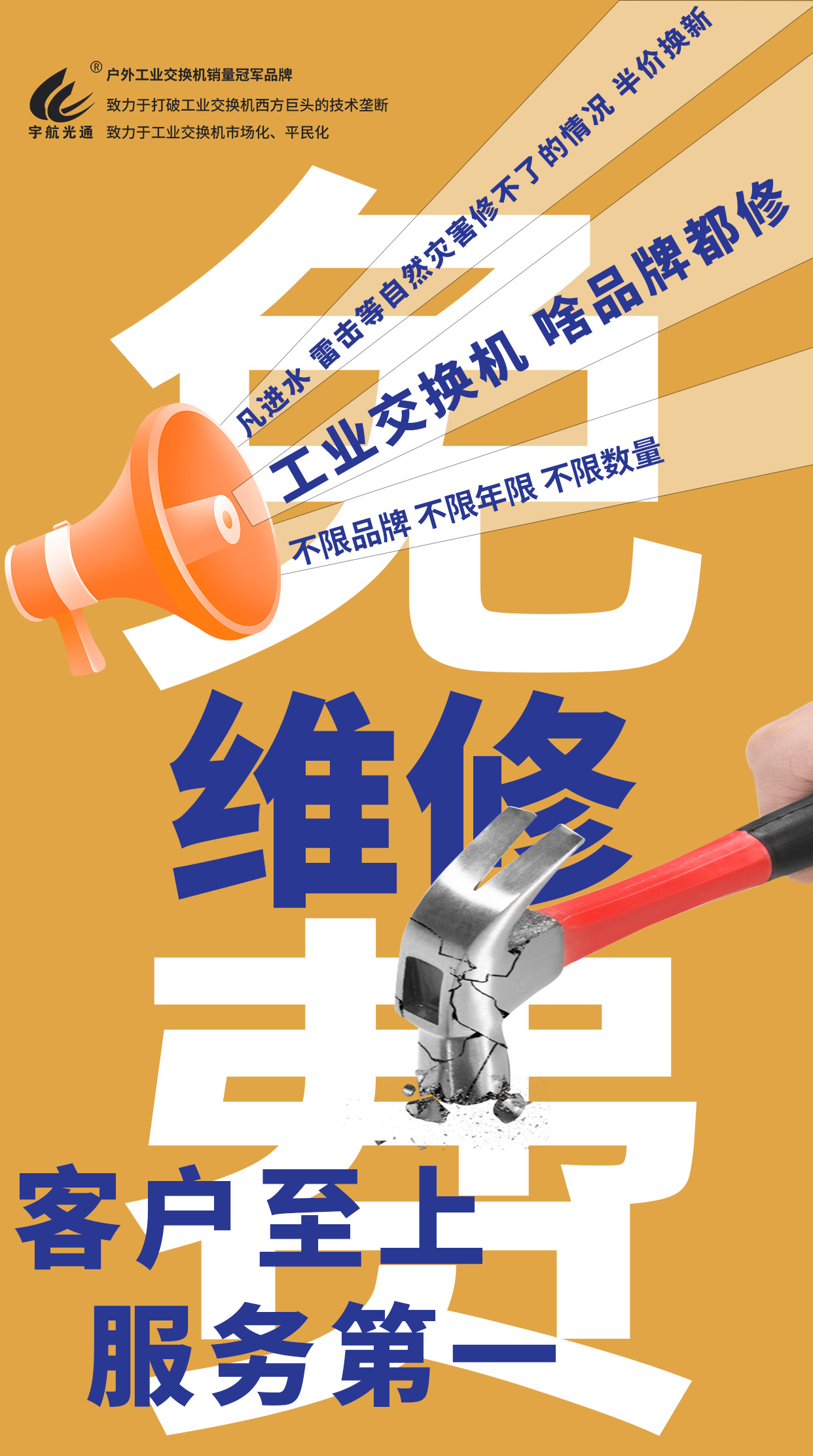 客戶至上、服務第一:宇航工業交換機免費維修、半價換新,解決您的所有后顧之憂!