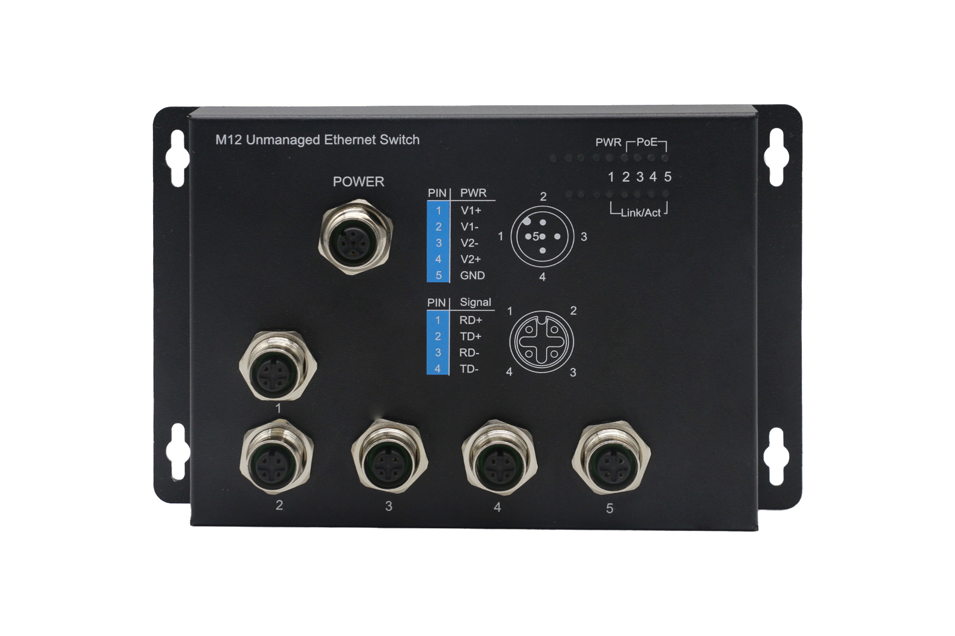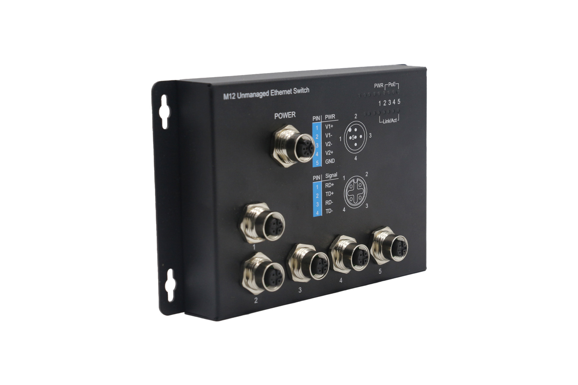 YH200-KWL-M12系列非網管型以太網交換機專為工業應用而設計,使用M12連接器確保緊密、堅固的連接,并保證可靠的抵抗振動和沖擊等環境干擾。該系列以太網交換機提供5或8個M12以太網端口,支持IEEE802.3/IEEE802.3u/IEEE802.3ab/IEEE802.3x,具有10/100/1000M、全/半雙工、MDI/MDI-X自適應,并提供經濟的解決方案適用工業以太網。