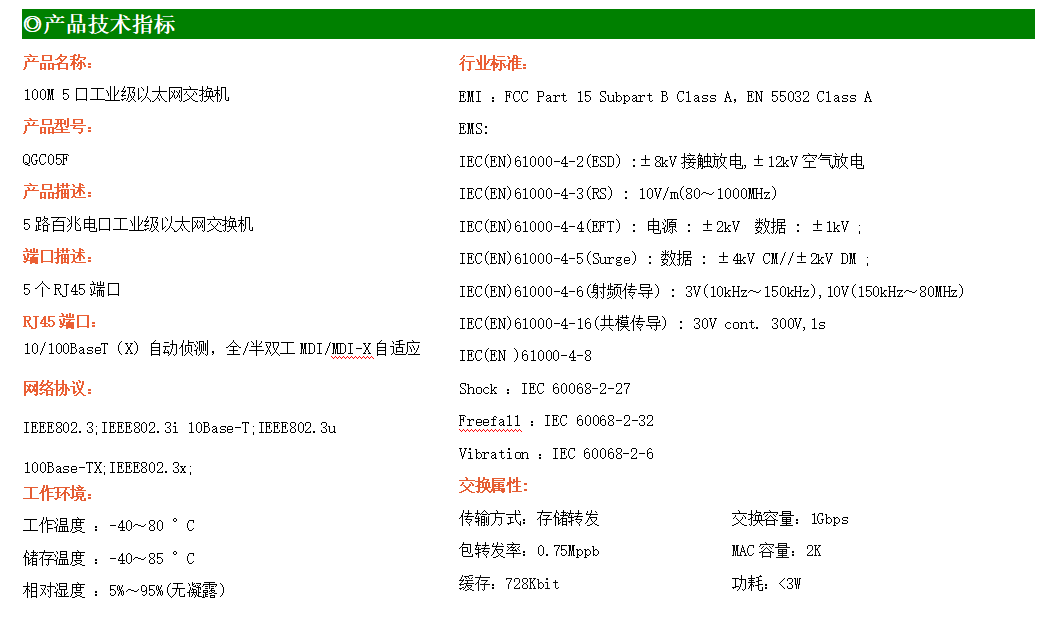 8路百兆電口工業級以太網交換機,支持8個10Base-T/100Base-TX電口。產品符合FCC、CE、ROHS標準。AF08F交換機具有-30℃~75℃的工作溫度,具有超強的堅固度能適應各種嚴苛環境,也可以非常方便的安置在空間緊湊的控制箱中。導軌的安裝特性、寬溫操作及擁有IP40防護等級的外殼及LED指示燈,使AF08F成為一個即插即用的工業級設備,為用戶的以太網設備聯網提供可靠、便捷的解決方案。
