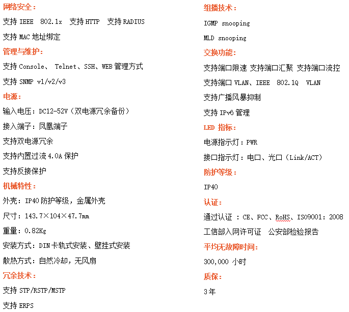 ●支持STP/RSTP/ERPS,SNMPv1/v2/v3,確保網(wǎng)絡(luò)安全