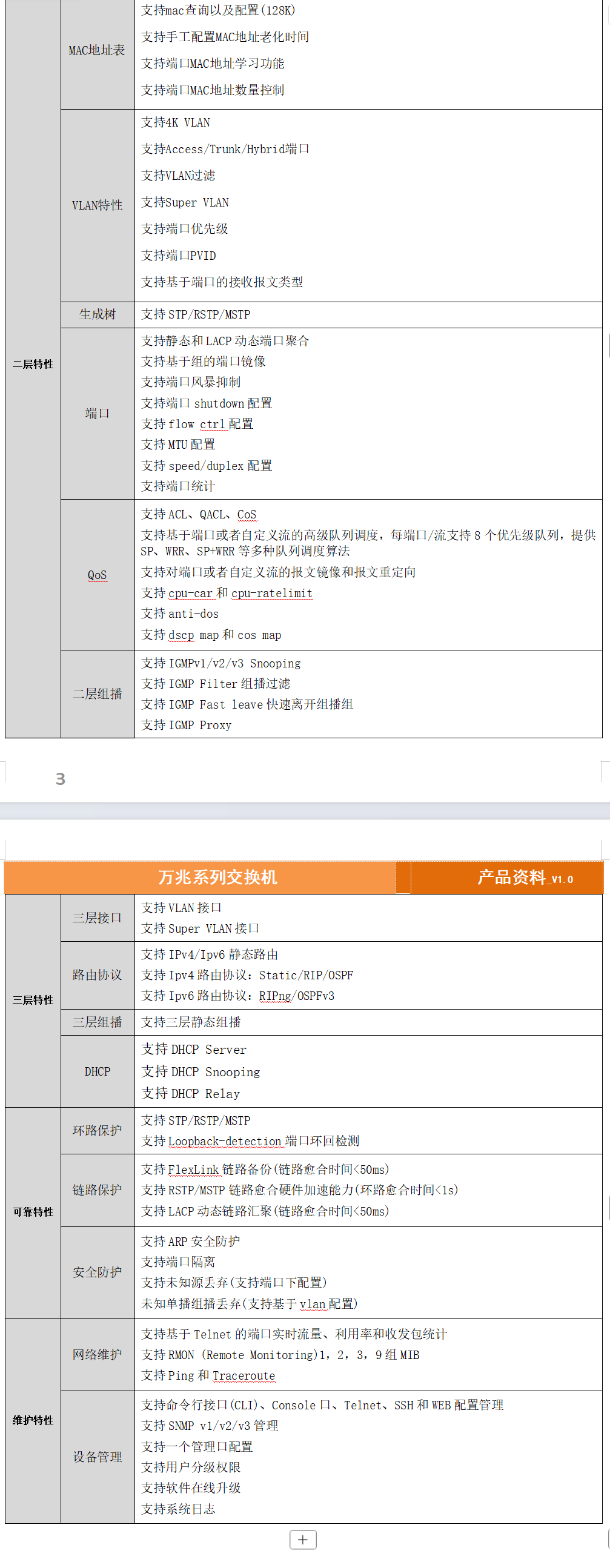 可對(duì)系統(tǒng)、端口、網(wǎng)絡(luò)、VLAN、Trunk、優(yōu)先級(jí)、安全等進(jìn)行管理。包括支持不同病毒防御和二層到四層的安全過(guò)濾。具備基本的三層網(wǎng)絡(luò)管理功能。