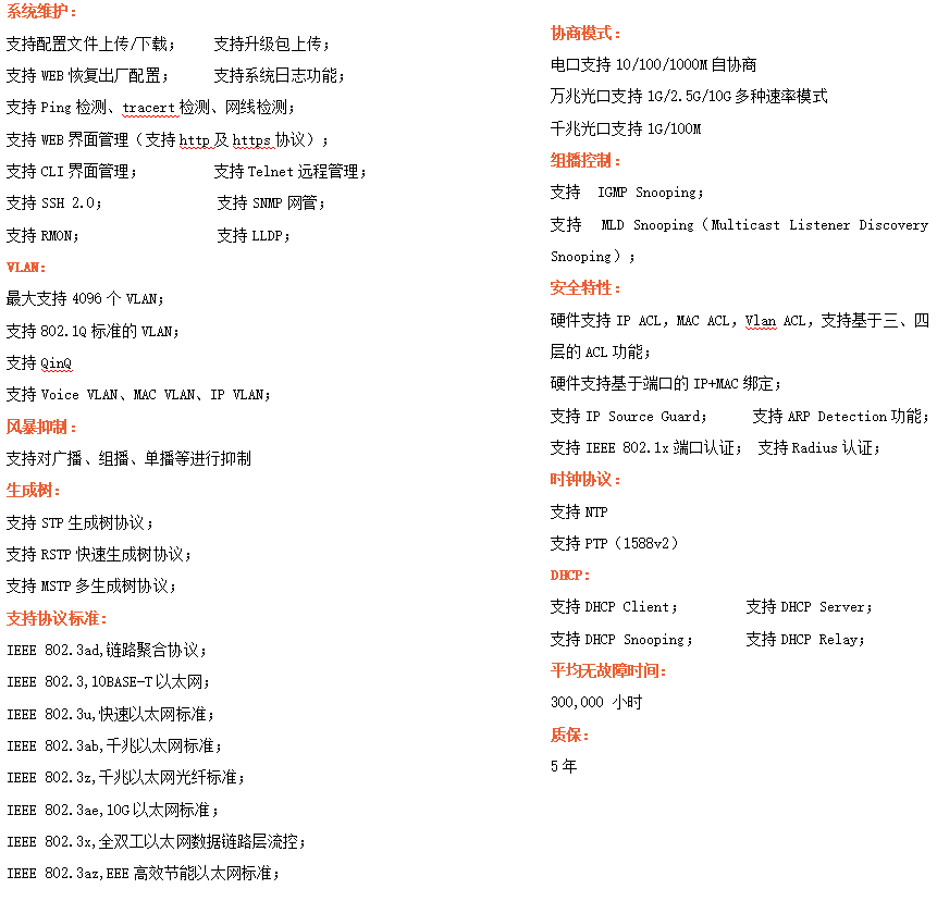 ●管理功能:支持WEB、CLI、SNMP等多種管理方式