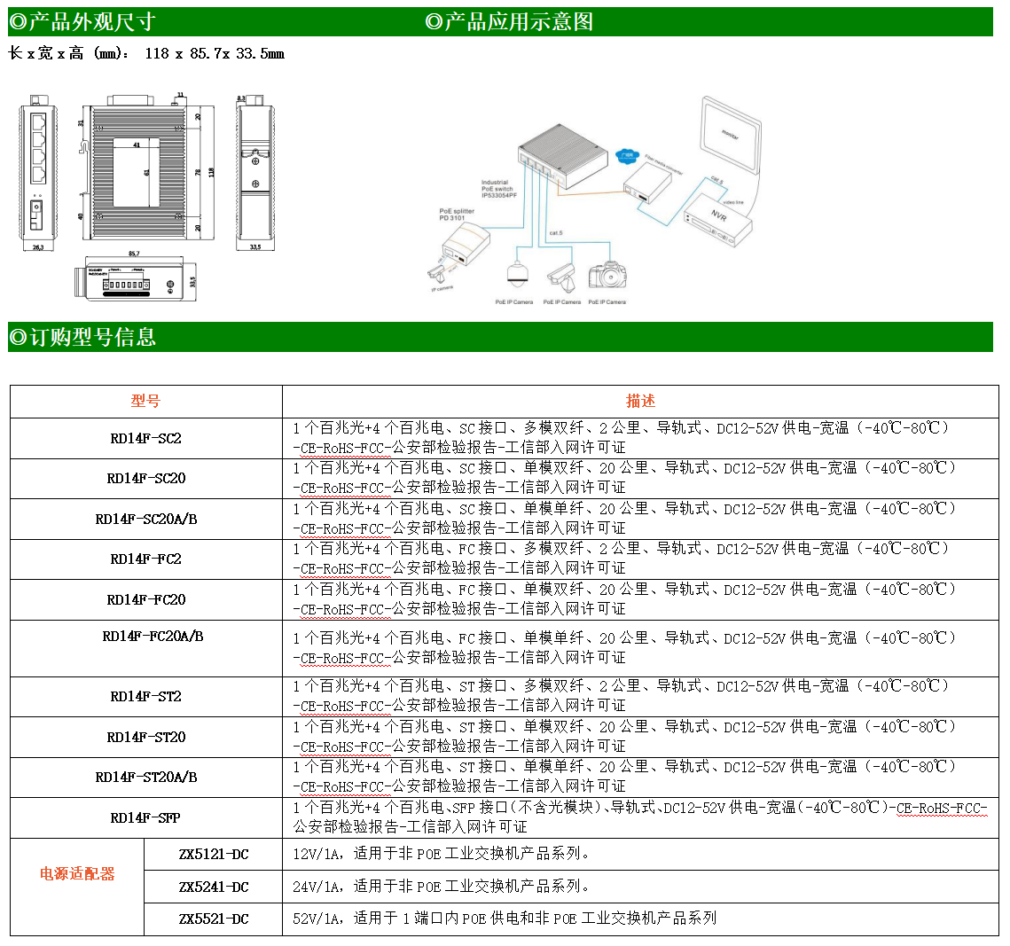首頁產品系列百兆1光4電入地鋁合金RD14F-SFP