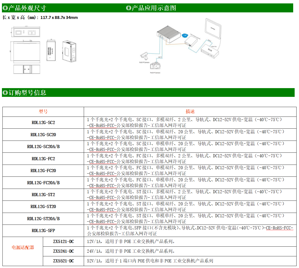 2路千兆電口+1路千兆FX光口工業級以太網交換機,支持2個100Base-T/1000Base-TX電口和1個1000Base-X光口。產品符合FCC、CE、ROHS標準。RDL12G系列交換機具有-40℃~75℃的工作溫度,具有超強的堅固度能適應各種嚴苛環境,也可以非常方便的安置在空間緊湊的控制箱中。導軌的安裝特性、寬溫操作及擁有IP40防護等級的外殼及LED指示燈,使RDL12G成為一個即插即用的工業級設備,為用戶的以太網設備聯網提供可靠、便捷的解決方案。