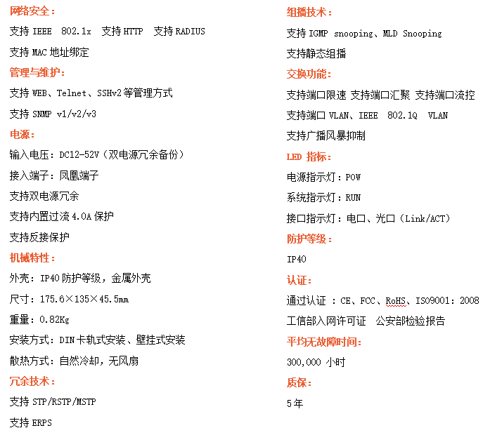 ●支持STP/RSTP/ERPS,SNMPv1/v2/v3,確保網(wǎng)絡(luò)安全