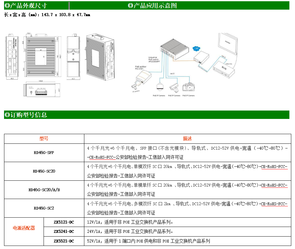 6路千兆電口+4路千兆光口工業(yè)級以太網(wǎng)交換機,支持6個10/100/1000Base-T(x)電口和4個1000Base-X光口。產(chǎn)品符合FCC、CE、ROHS標準。RD46G交換機具有-40℃~80℃的工作溫度,具有超強的堅固度能適應(yīng)各種嚴苛環(huán)境,也可以非常方便的安置在空間緊湊的控制箱中。導(dǎo)軌的安裝特性、寬溫操作及擁有IP40防護等級的外殼及LED指示燈,使RD46G成為一個即插即用的工業(yè)級設(shè)備,為用戶的以太網(wǎng)設(shè)備聯(lián)網(wǎng)提供可靠、便捷的解決方案。